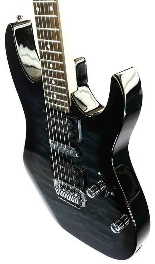 IBANEZ GRX70QA-TKS — правосторонняя шестиструнная электрогитара темно-синего цвета с конфигурацией звукоснимателей HSH. Модель создана в рамках линейки RG GIO — бюджетной серии гитар, которую компания Ibanez выпускает для начинающих музыкантов и тех гитаристов, кому в первую очередь важен баланс цены и качества.