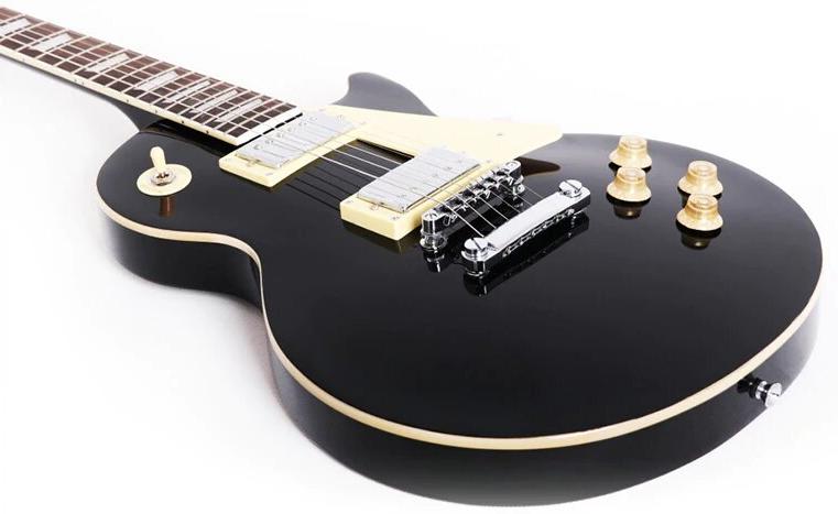 В регуляторах гитары предусмотрены 2V/2Т и 3-позиционный переключатель, а фурнитура выполнена в стильном хроме. Красивый черный цвет гитары придает ей элегантность и индивидуальность.
