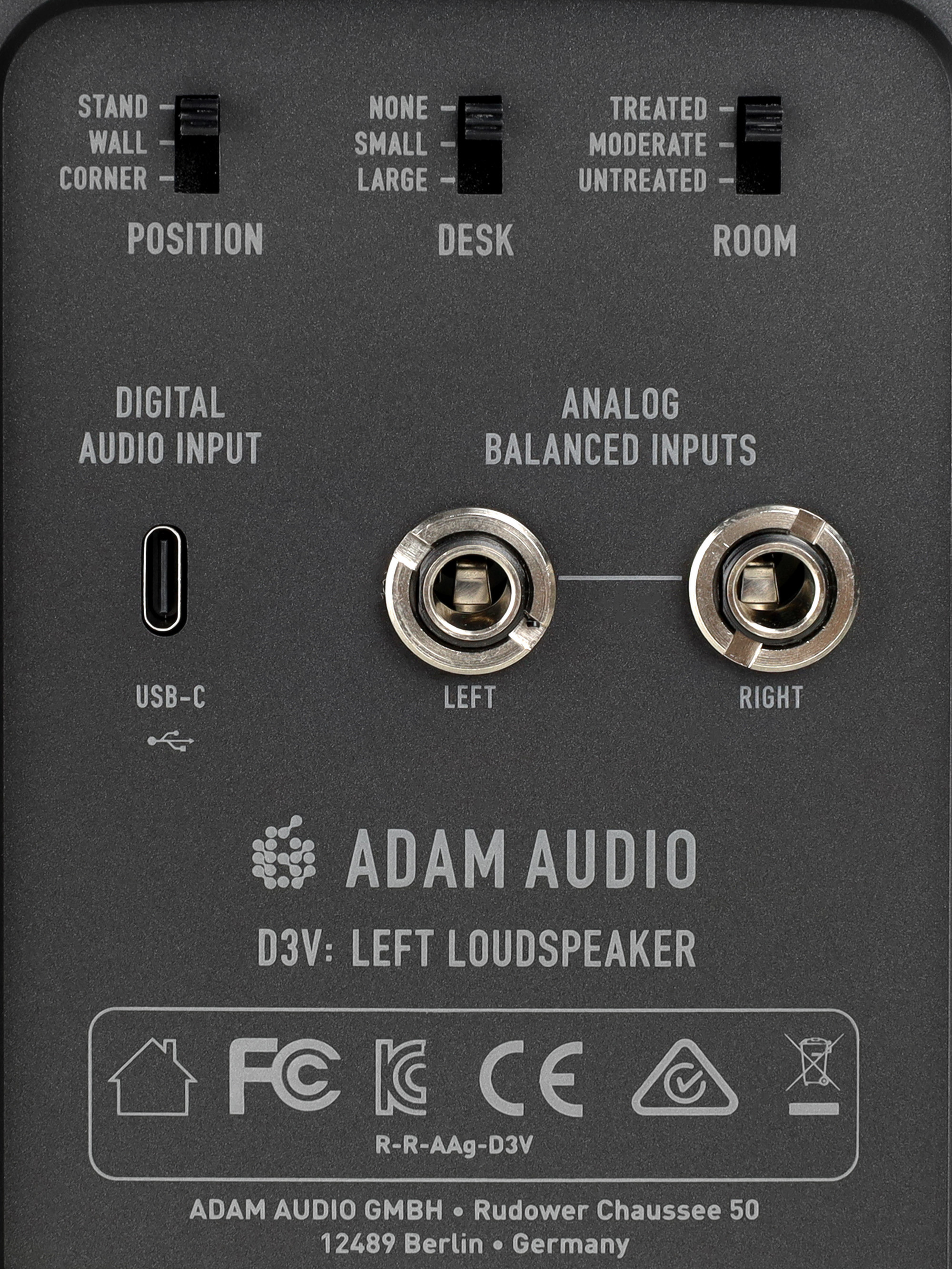 - Три положения DSP‑коррекции задней панели: Bass, Desk, Treble