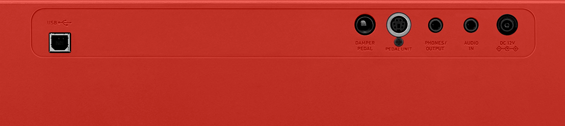 PHONES / OUTPUT: 1 (стерео мини джек), разъем для педали: 1 (демпфер), разъем для 3-педального блока: SP-34, CS-470P, разъем AUDIO IN, USB типа B