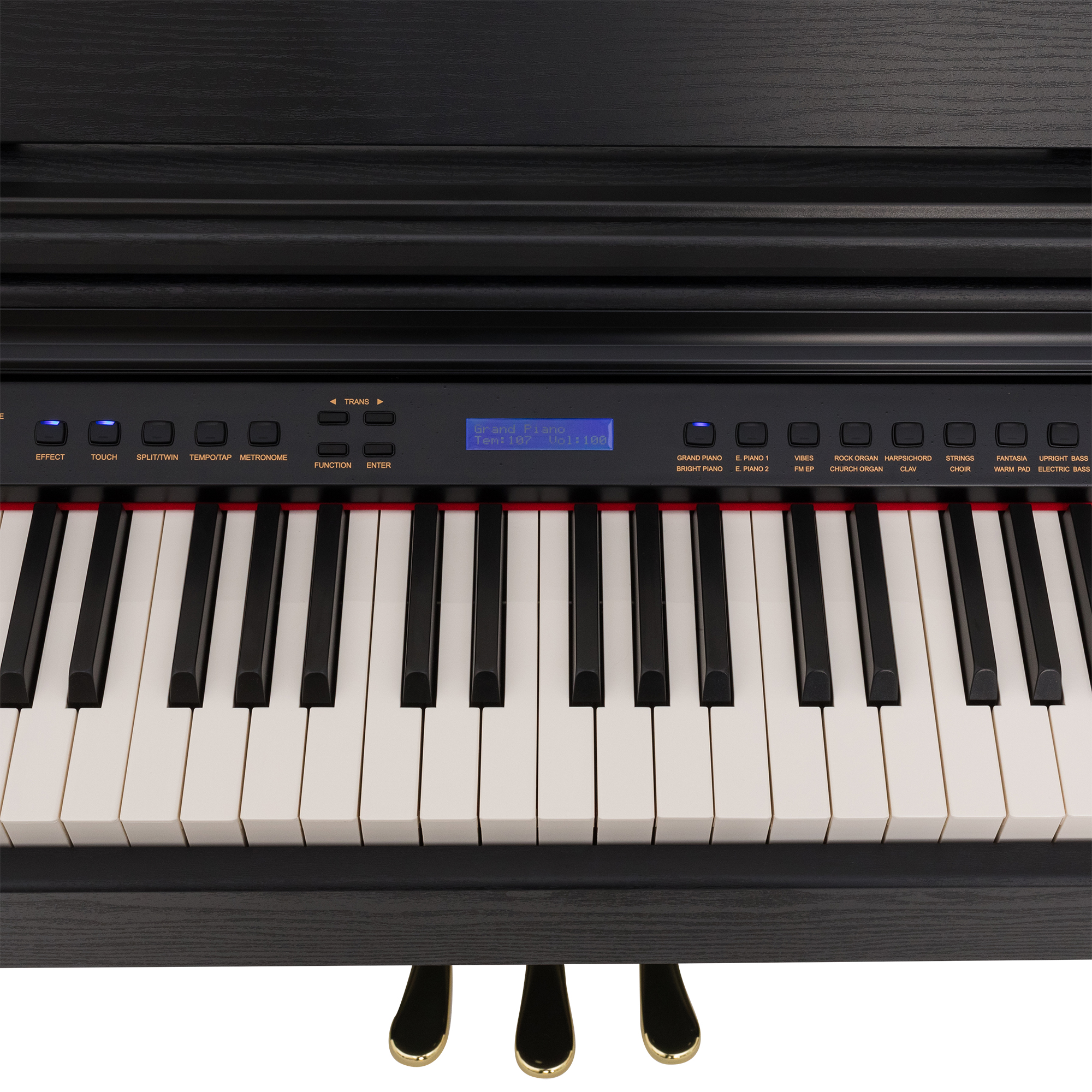 - Полноразмерная молоточковая клавиатура 88 клавиш: чувствительная к силе нажатия, аналогична механике акустического фортепиано.