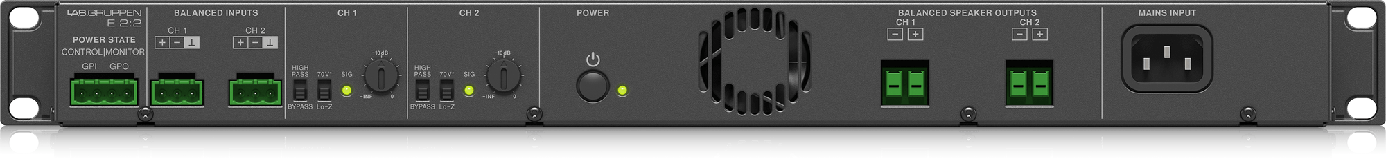 Lab.gruppen E 2:2 представляет собой высококачественный профессиональный усилитель мощности, способный работать с различными источниками звука. Модель отличается высокими техническими характеристиками, которые позволяют получить действительно высокую громкость без искажений, шума, потери частот и других артефактов. Прибор выполнен в прочном алюминиевом корпусе рэкового формата высотой 1U.
