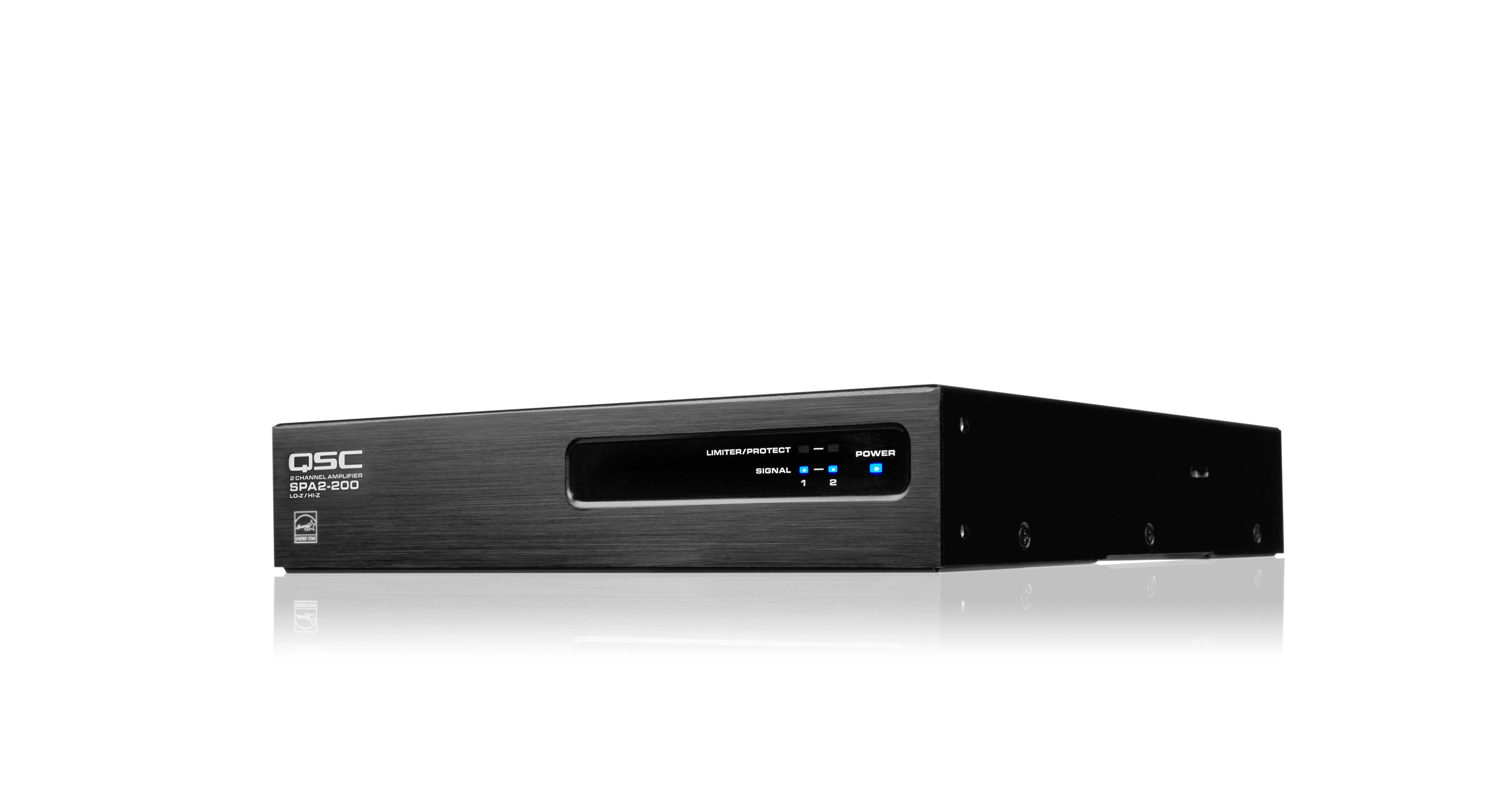 На фронтальной панели QSC SPA2-200 расположены основные светодиоды, включая индикацию работы встроенного лимитера и наличия сигнала: все раздельные для каждого из двух каналов. Входы и выходы у усилителя выполнены на колодках Euroblock. Там же расположен пятиконтактный разъем для подключения устройств удаленного контроля и две канальных ручки регулировки уровня. Корпус выполнен из металла с литой фронтальной панель, а жесткие металлические же крепления добавляют прочности конструкции. Усилитель обладает сертификатом соответствия Energy Star, что означает высокую энергоэффективность и отсутствие необходимости в активном охлаждении. С этой технологией связана и другая, под названием Auto-Ramp: благодаря ей возможны бесшумный запуск и отключением энергопотребления через 28 минут. Наконец, интегрирована полная защита схем от замыкания, перегрева, ультразвука и радиочастотных помех.